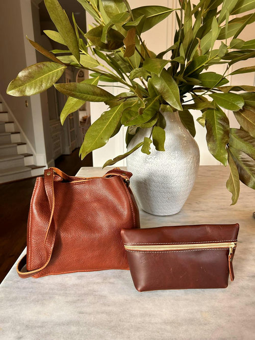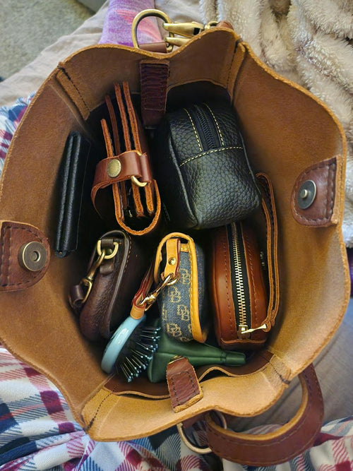 I love the rich color and texture of the beautiful leather. I have a few PL bags and this one is my favorite. I like the open, non zipper version. There is a small hook and circle to give it the butterfly look. The size is perfect! I have the utility bag to keep the little stuff, chapstick, pens AirPod etc organized. If you are considering this bag, BUY IT!! You will not be disappointed!