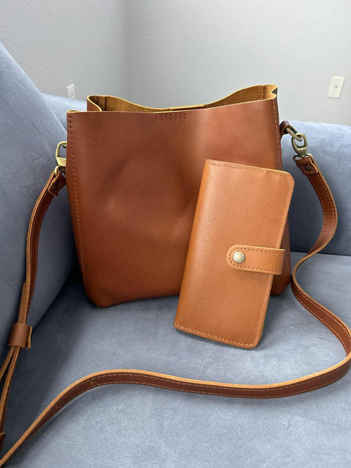 This is my second bag from Portland Leather. I love my Medium Cognac Tote but wanted something lighter in color to carry during the warmer months. This Butterfly Bucket Bag in Dune is great! Lovely soft leather and I love that it can be closed! This will not be my last purchase!