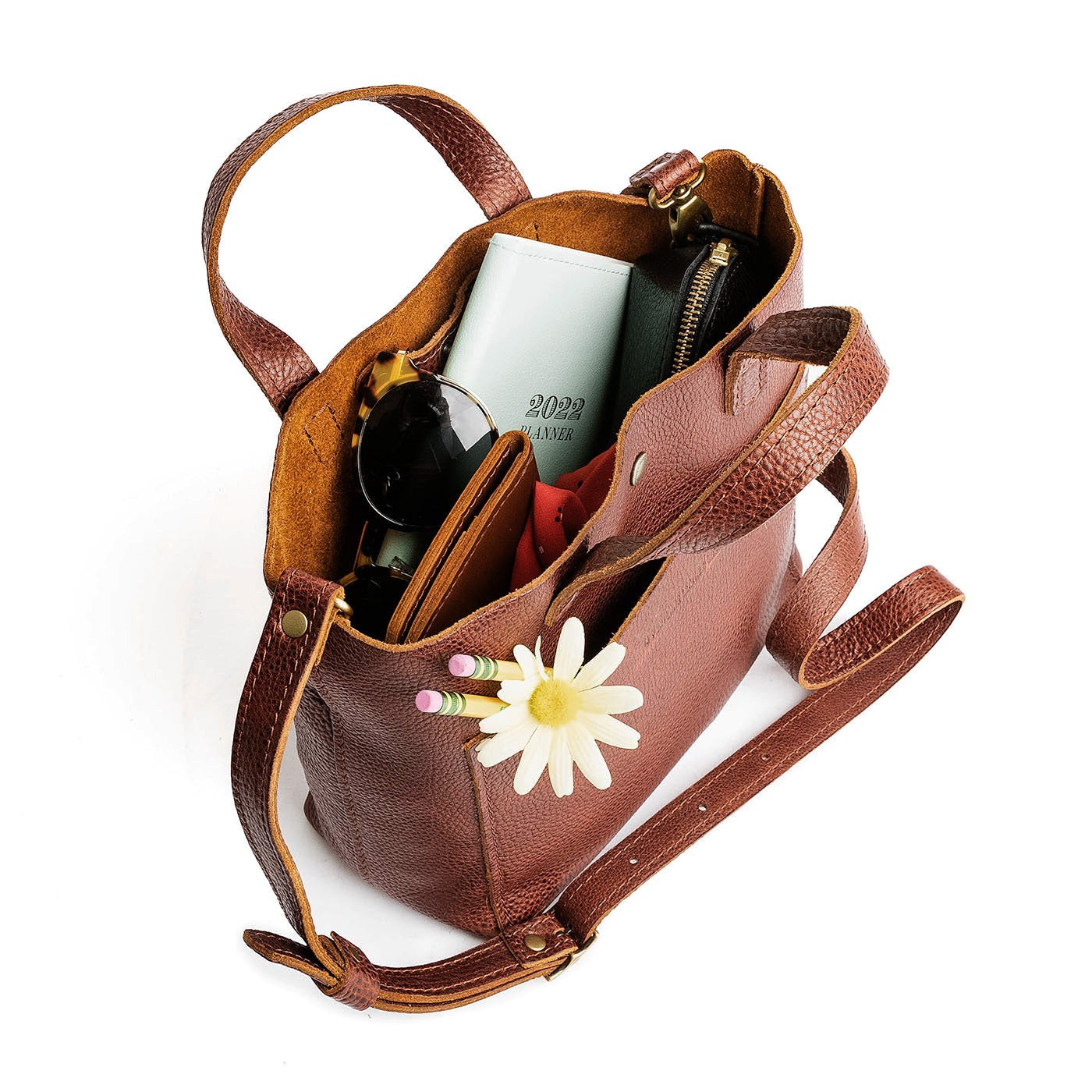 The mini crossbody tote is the perfect size for everyday use. I love the fun cucumber color! Buying it at the outlet with the discounted price was just a bonus!