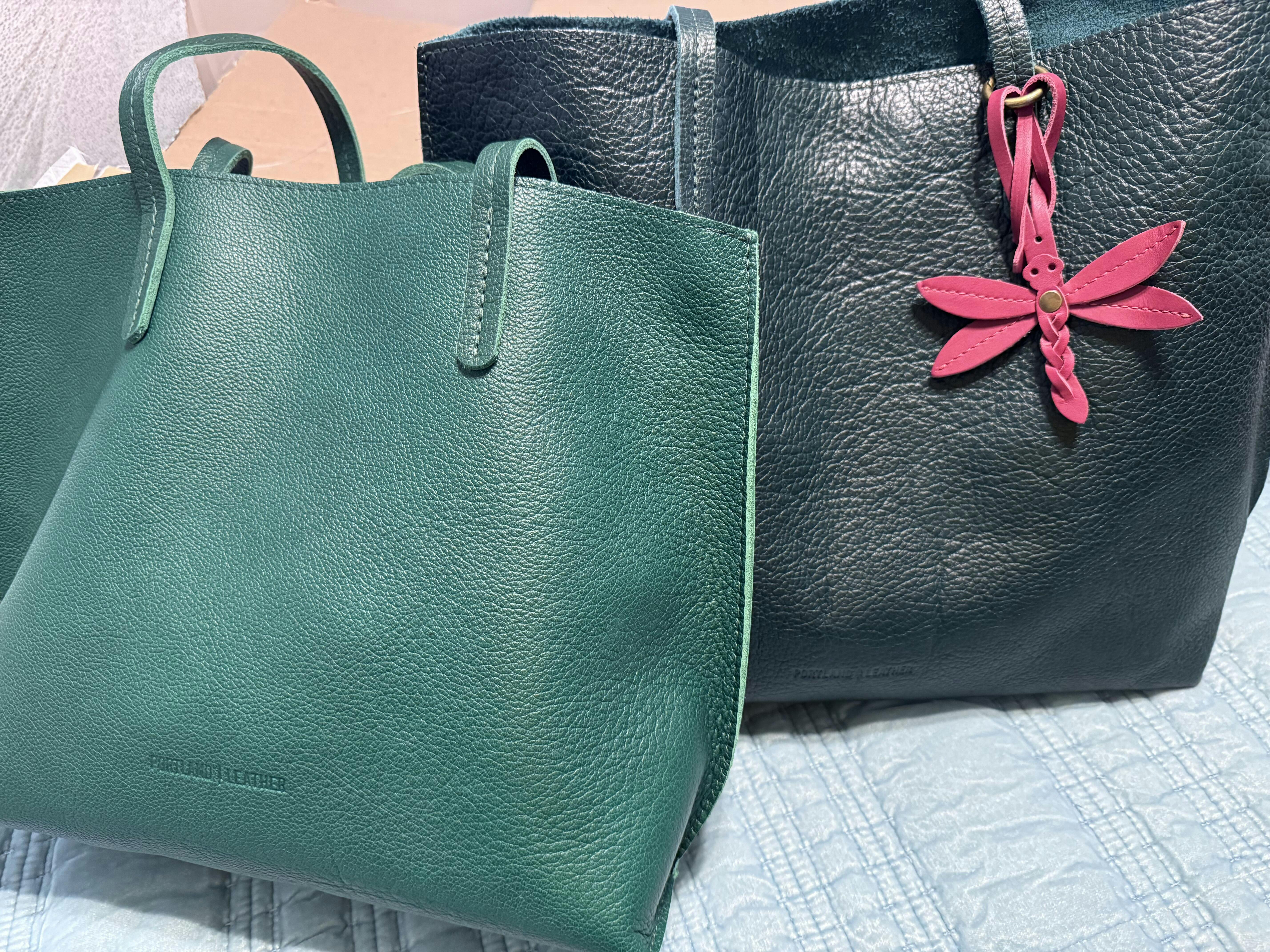 Perfect size bag for work. Such a beautiful rich, dark green. The straps are so soft and comfortable to carry.