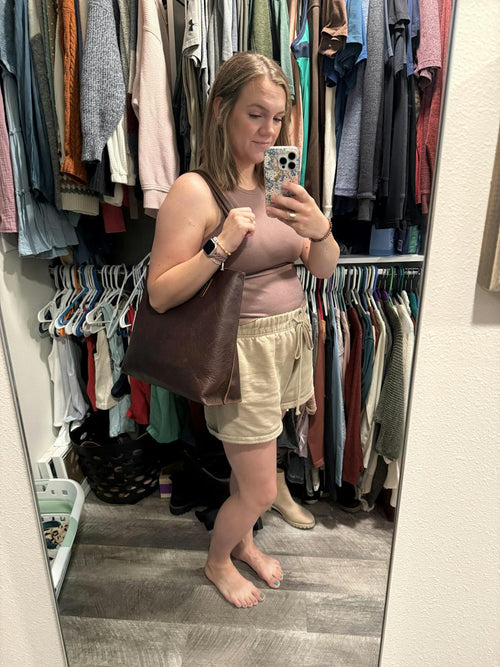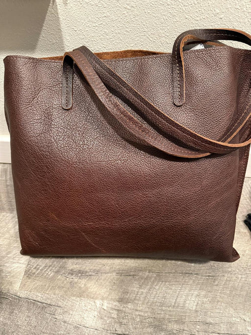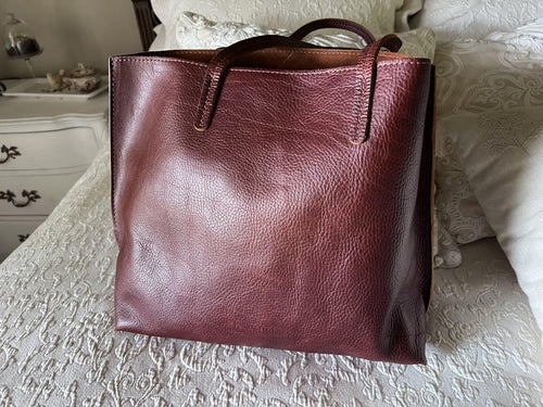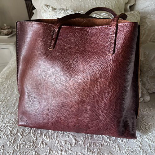 This tote is fabulous. I have the smaller size in Nutmeg and plan to buy a few more. I really like that the top is smaller than the bottom. This is a very comfortable carry.
