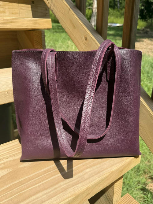 I’m not a tote girl. Usually I find them heavy. The August is lightweight and roomy. The Plum color is, as usual, beautiful. Love the straps. The only thing that would make it better is a zipper. And an even bigger size. 🥰☺️💜👜 (pic shows my Orchid lg. Devan too)