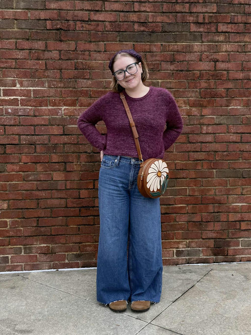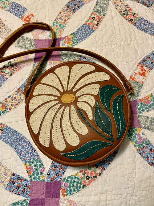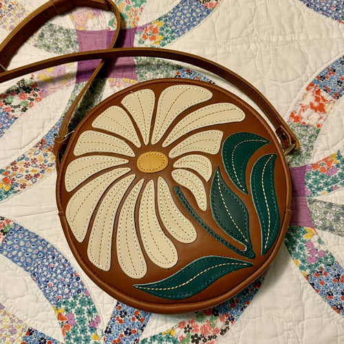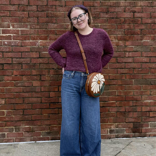This bag immediately caught my eye with it’s graphic flower appliqué. I was able to get it “slightly imperfect,” which is always okay with me since I’ve never gotten a “slightly imperfect” bag that seems anything but perfect in my eyes. Mine is large, which makes it a great everyday bag; it’s surprisingly roomy! I ordered it with a new Portland wallet, the Quesadilla in Clownfish (props to whoever is naming these colors). The round corners of the Quesadilla make it a perfect fit in this Circle bag. I love it!