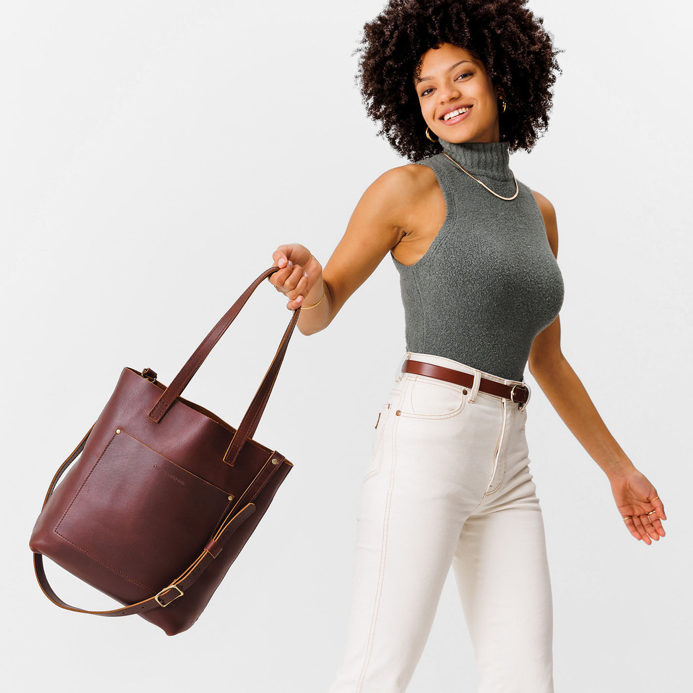 I love my crossbody tote in the color honey. The quality is exceptional and the leather smells divine. It is quite spacious without being too oversized. I am 5’6” slender build. I use it as a work bag for my wallet, iPad, and planner supplies. With all that, it still has space for a sweater and snacks. I am very pleased with my purchase. I ordered the AP version and thought it looked amazing. I have used it daily for the past week and will definitely purchase more from Portland Leather.