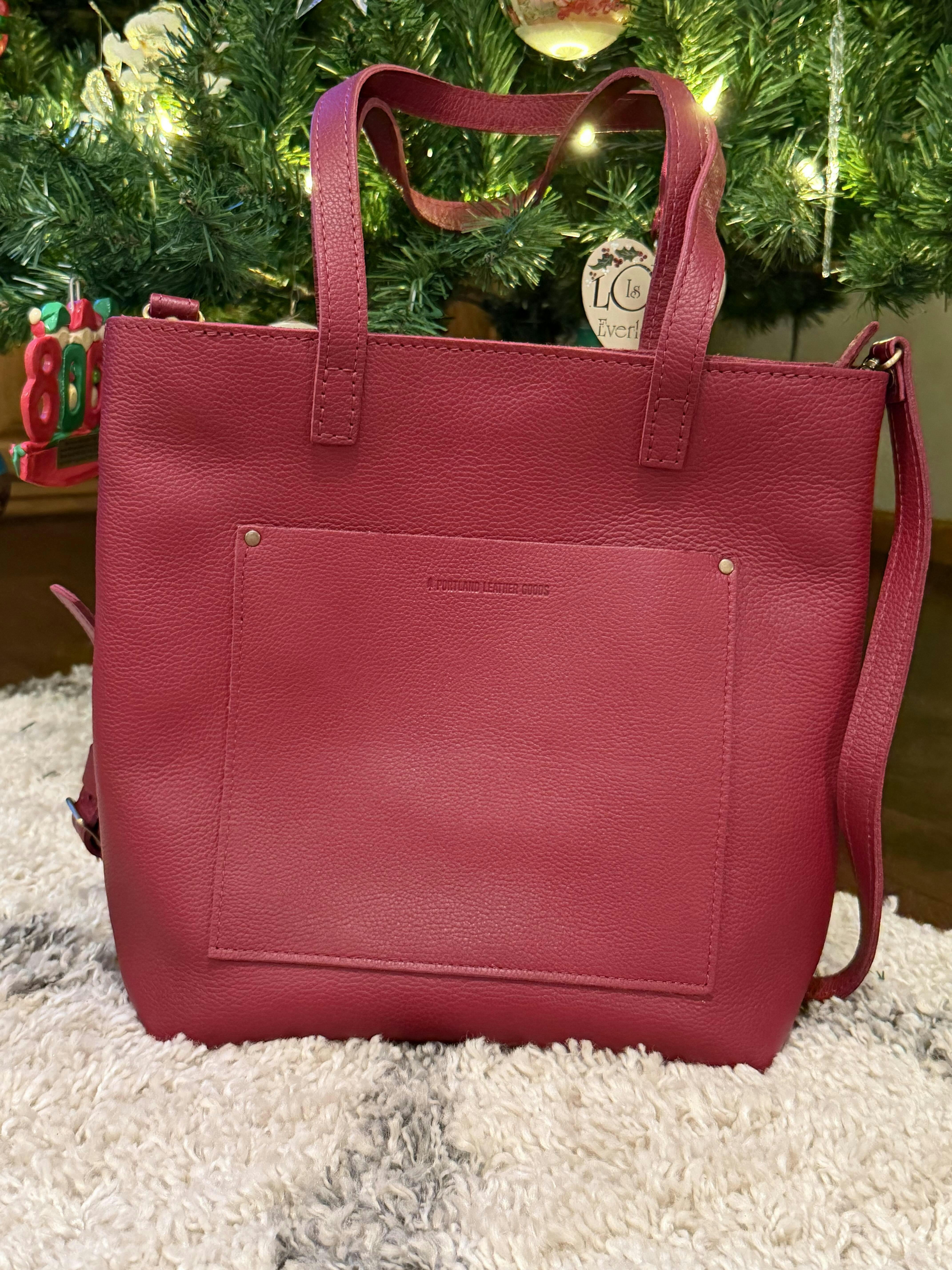 My new AP Black pebbled CB Tote is perfect. I got this CB primarily for my laptops. The first photo (with my Metro Mini) show (or don't really show) my CB holding my 13" Macbook Pro. - perfection! The second photo is holding my work 14" MacBook Pro and that's not too shabby either! Love the versatility of having long shoulder handles and crossbody strap. Happy camper here. Thank you Portland Leather!