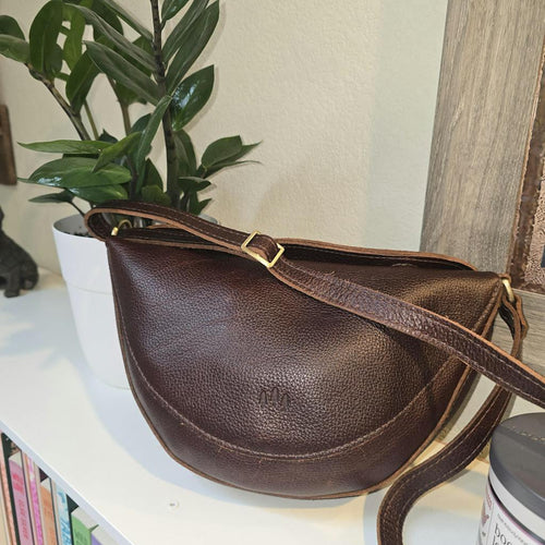 I might have a nutmeg problem, haha. This leather is so soft and squishy. This is a great size (large) and I love the way the top folds over and fastens with magnets. Very slouchy and perfect. I like the 2 interior pockets. My pup also fits in this style, so if you have a 5-6 pound dog, the softer leathers work as a sling and hug around your furbaby. :)