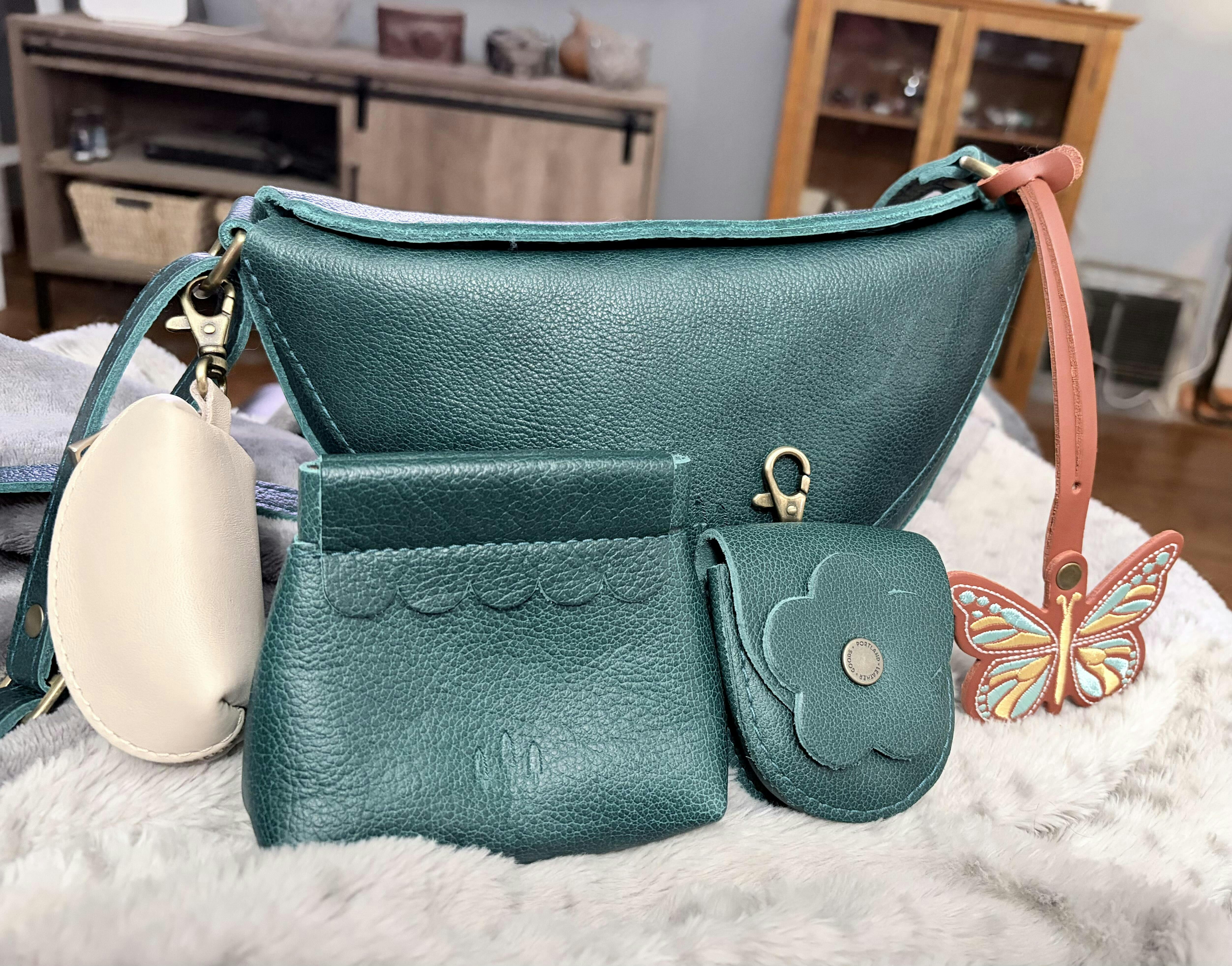 Love this bag - Sea Glass gorgeous color and lovely soft leather. The medium size is perfect for phone, wallet, glasses etc. Shape is so comfortable to wear and value for money is exceptional. A must have!
