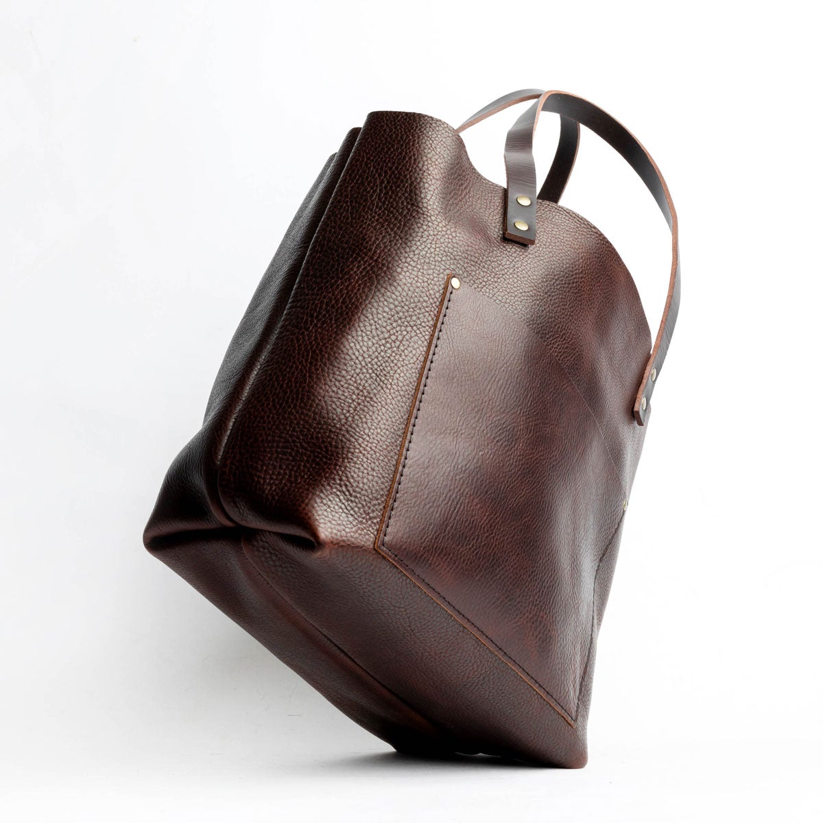 Coldbrew*Classic | Large leather tote bag with sturdy bridle handles and front pocket
