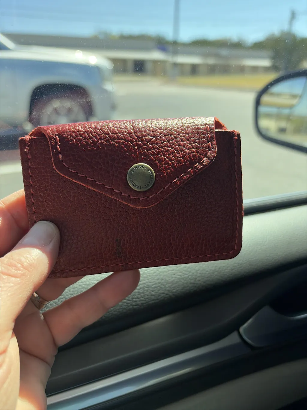 I purchased a pebbled leather (plum) bc I figured it would have a little extra give for storage. I am switching to the Lovebug Plus from a large bi-fold (which I also love) bc I wanted to try something different. I have my license, debit card, and primary 2 credit cards in the front, cash folded in the middle, and my insurance cards in the back. Since there’s no coin section, I’m opting to use a Daisy wallet for that. I have a few other various cards I could have also stored in the Lovebug Plus but decided to use (another) Daisy wallet to keep those separate since I don’t use them often.