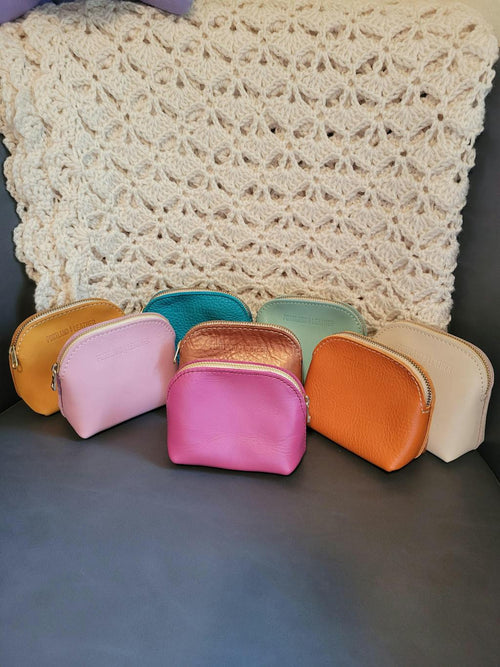 Great little pouch that can hold a lot. Perfect for lip balm, lipstick and little mirror. Or use it for your key fobs, airpods, and more! The vintage pink is a soft leather with faint pebbles.