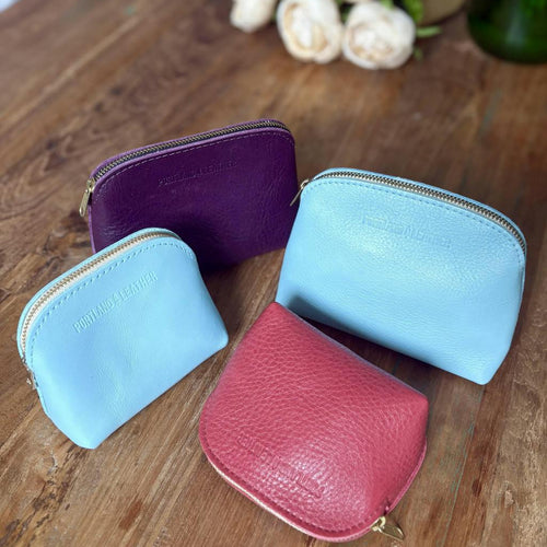 I keep this little unzipped inside my bag for easy access of hand cream, lipstick, Tylenol, toothpicks, mini envelope, etc. This color is a firmer leather and stands up nicely inside my bags.