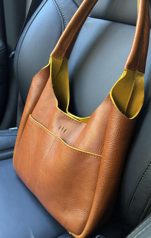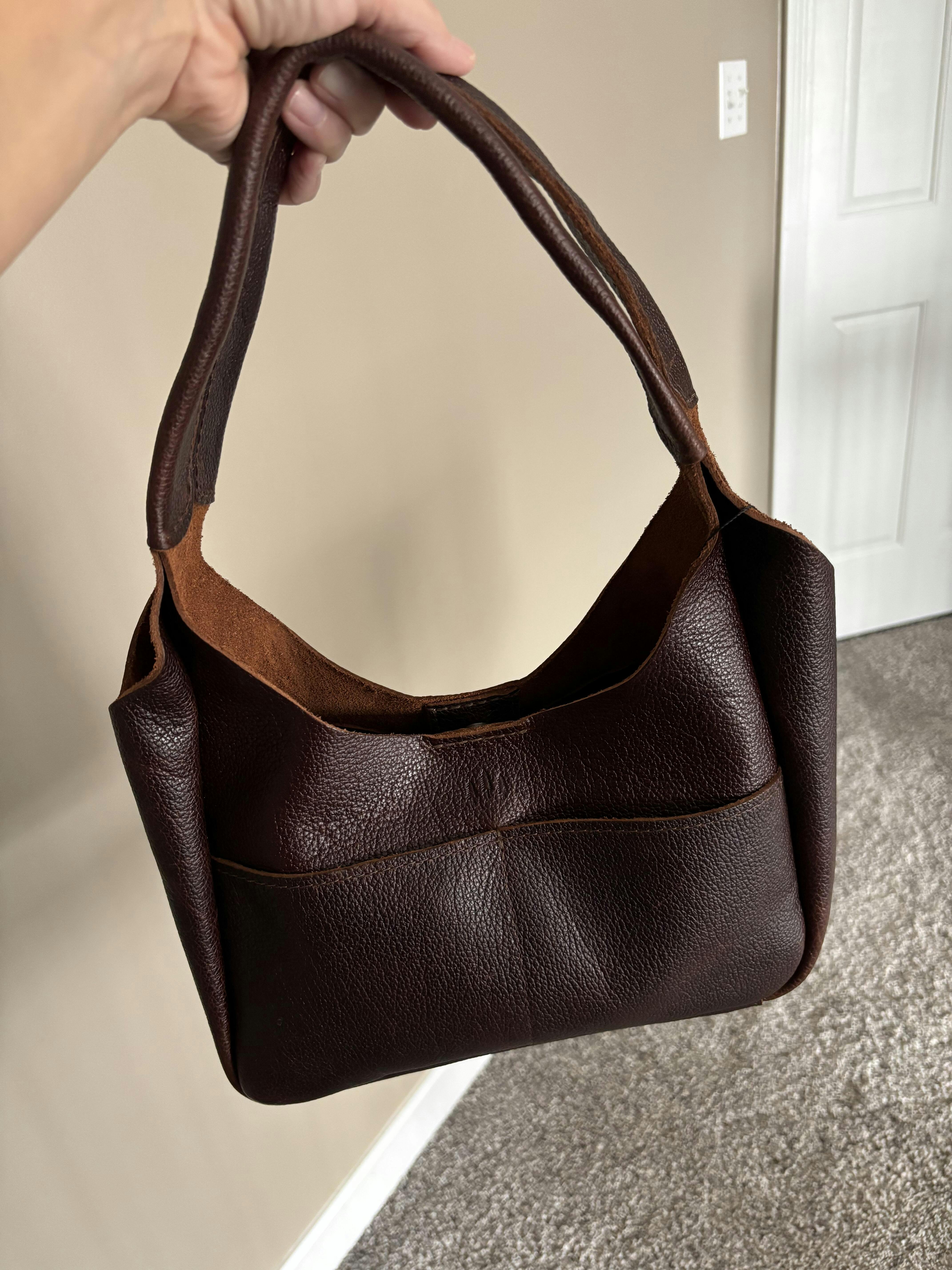 Madison was originally not a bag I considered. I'm so happy I ordered an almost perfect Large Madison in Sienna. The bag I received is very full of texture and character. I love the extra two outer pockets to keep things easy in reach and the one inner pocket. The double strap is a great detail on this bag that adds to it.