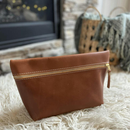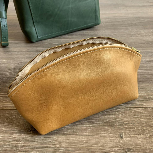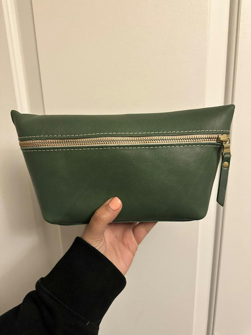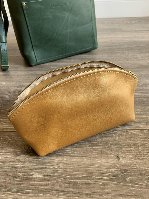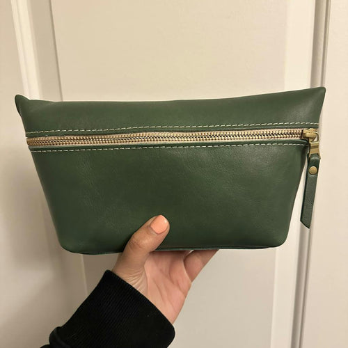 Love this little gem of a bag, I was skeptical of the larger size at first but quickly enjoyed having more space in my makeup bag to see all the things! The smell of the leather is amazing and the quality of the construction as well as the zipper is phenomenal. I can’t wait to travel with this bag too!