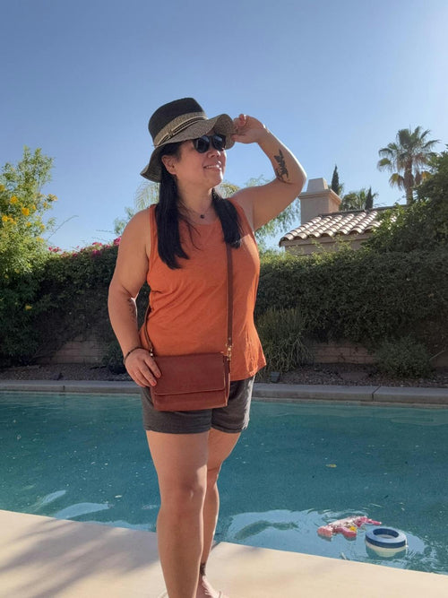 Forest Green*Mini | Model Wearing Small Leather Crossbody Bag with Magnetic Messenger Bag Closure