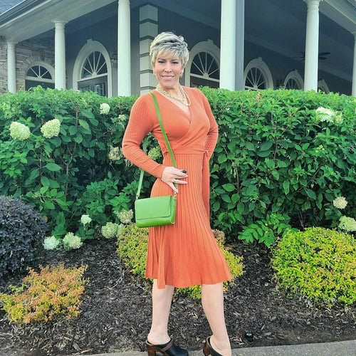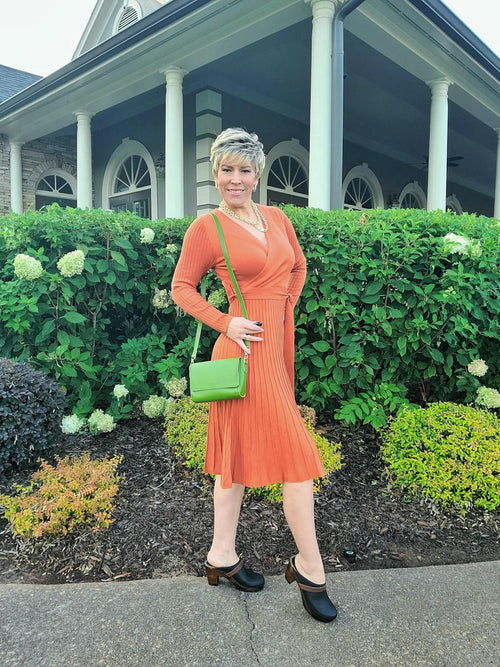 My wife loves this purse, but she says it’s not a ruby red, it’s more of a spicy red. She likes that it is small enough for an evening bag or a cross body bag for a day of antiquing, but big enough to hold a phone, card wallet, and sunglasses. She loves the minimal hardware and adjustable strap.