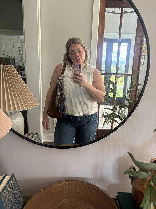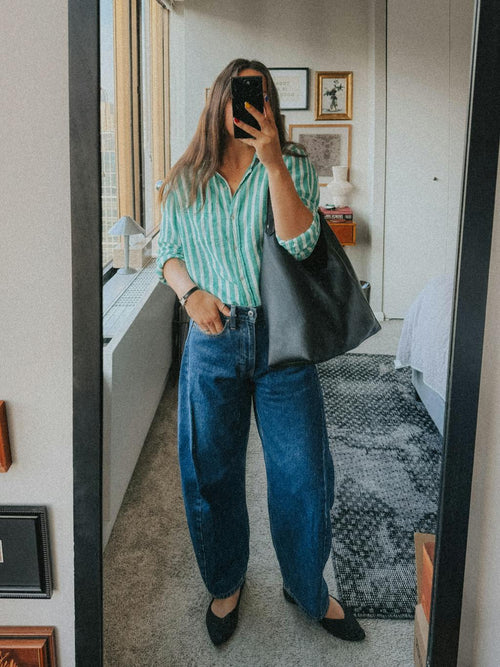Jackson*Small | Model wearing petite shoulder bag with adjustable strap and magnetic snap closure