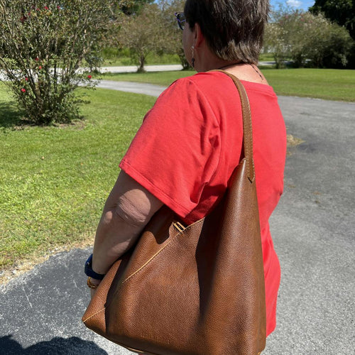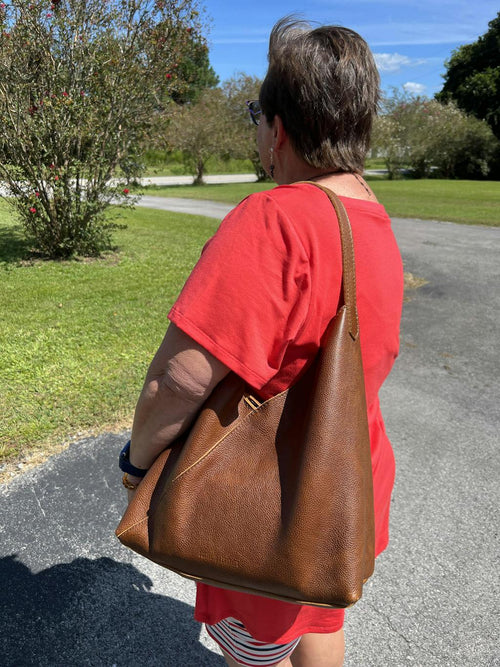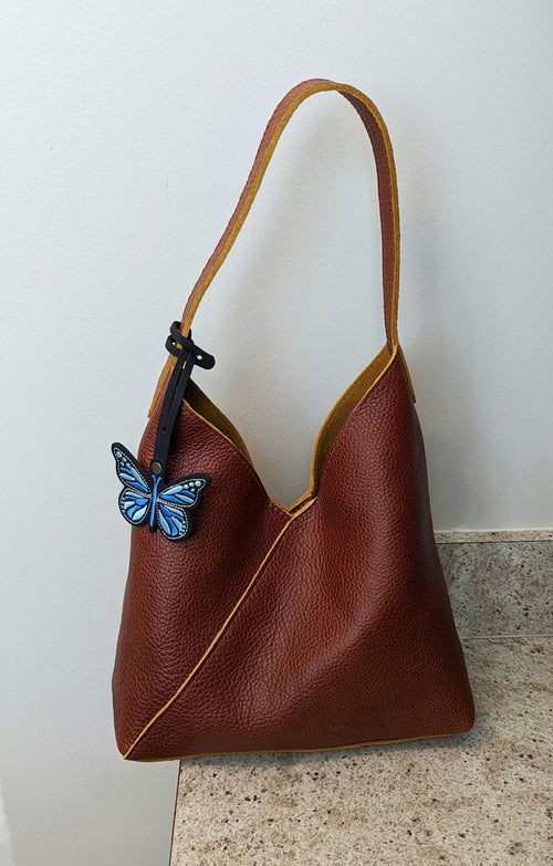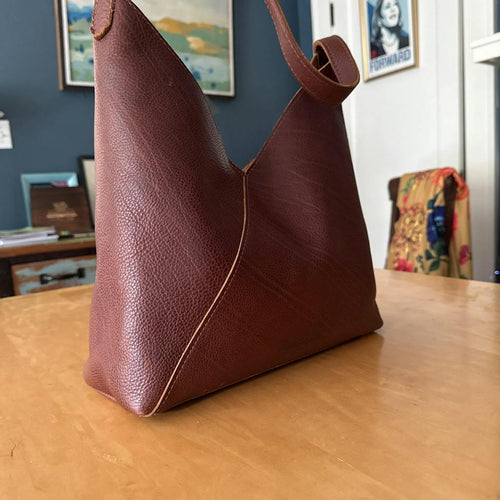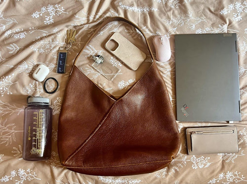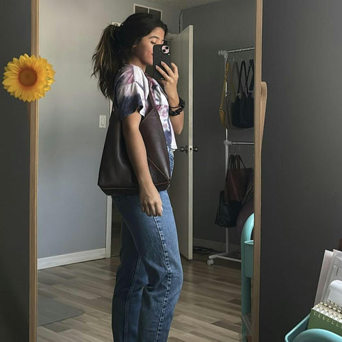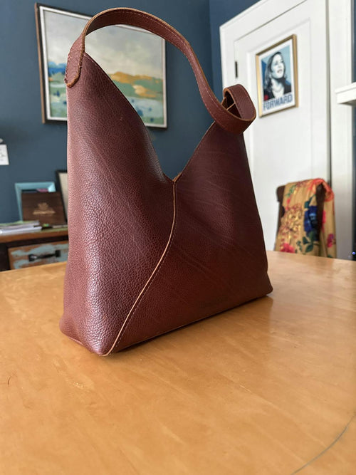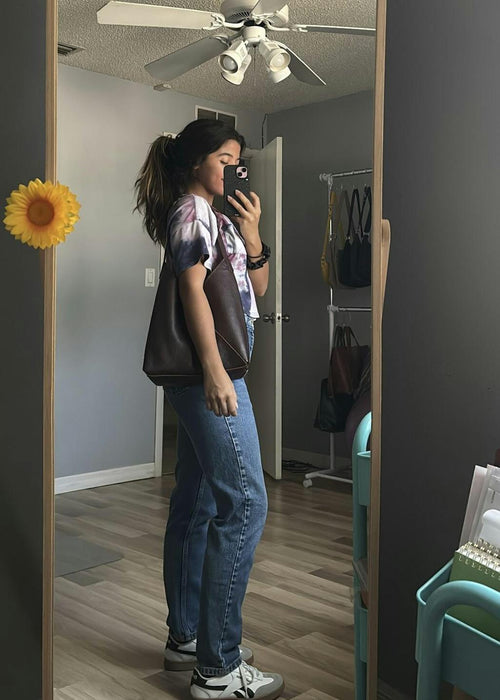 I bought this beautiful small bag in Sienna, it’s so pretty, slouchy and can hold more than I thought it would, it also has a hide stamp! I’d definitely buy this bag in the future in a different color, it’s a great style.