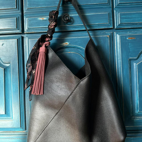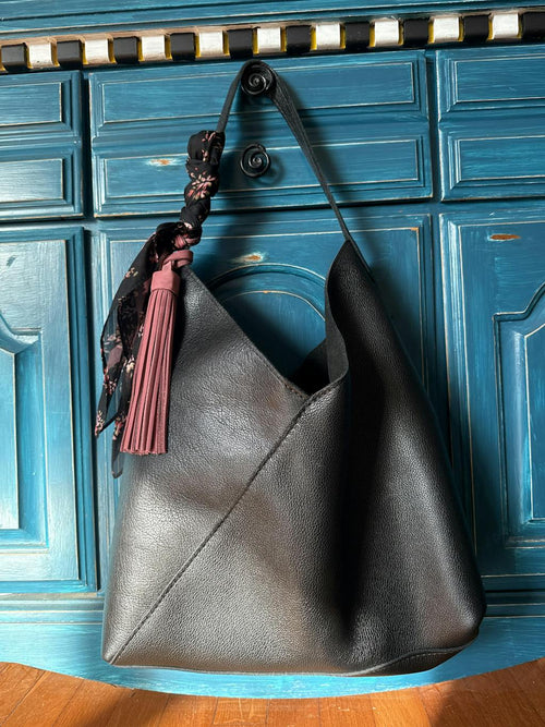 Jackson*Small | Petite slouchy leather shoulder bag with zipper opening and three metal tree emblems
