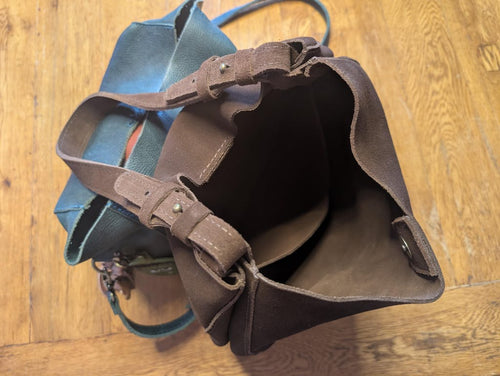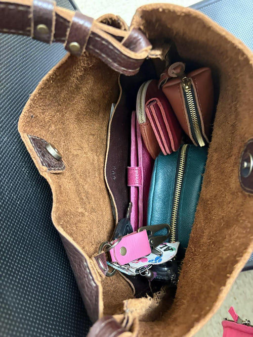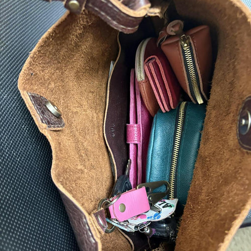 Our durable leather goods are unlined, featuring the natural suede side of the hide. Since fabric-lined bags inevitably discolor and tear with use, we chose to showcase the soft sueded underside of our hides, ensuring that your bag lasts a lifetime.