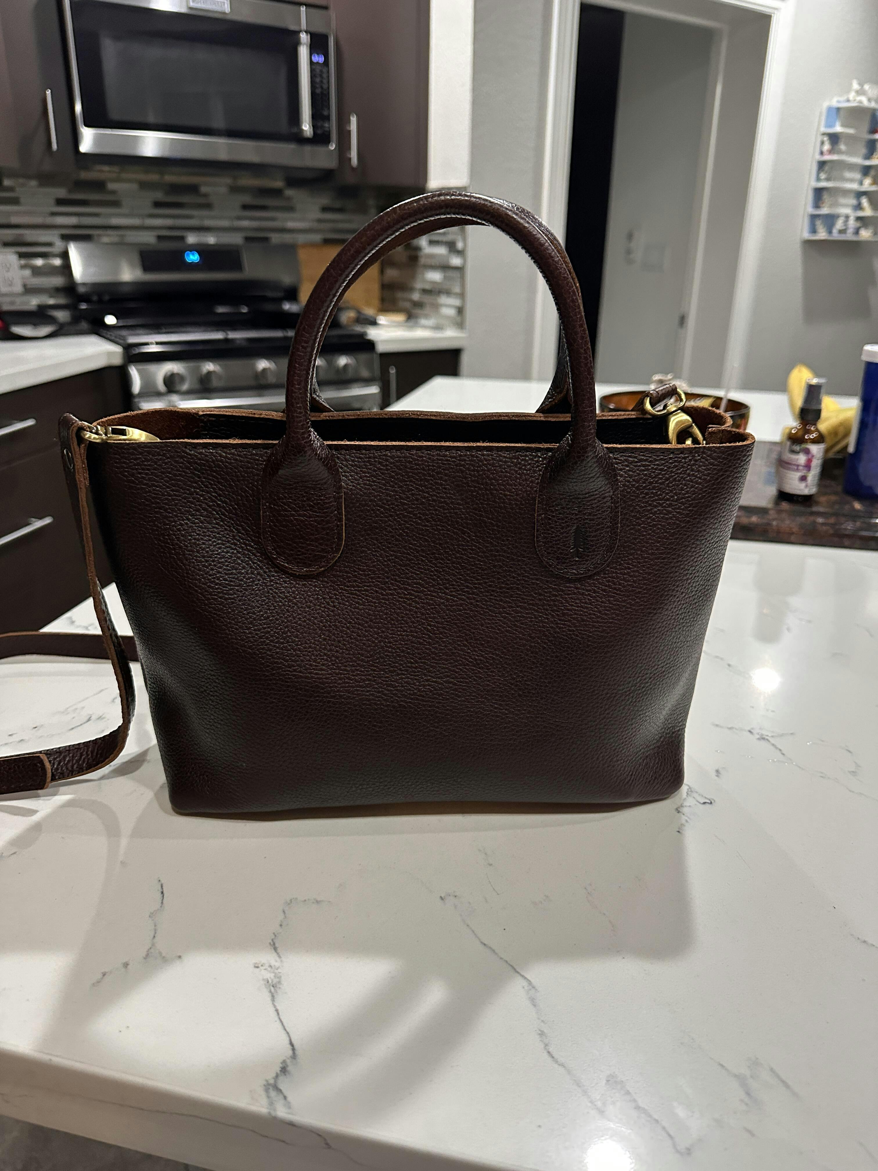 Light, easy essentials bag. Quality leather. Obsessed with the colors.