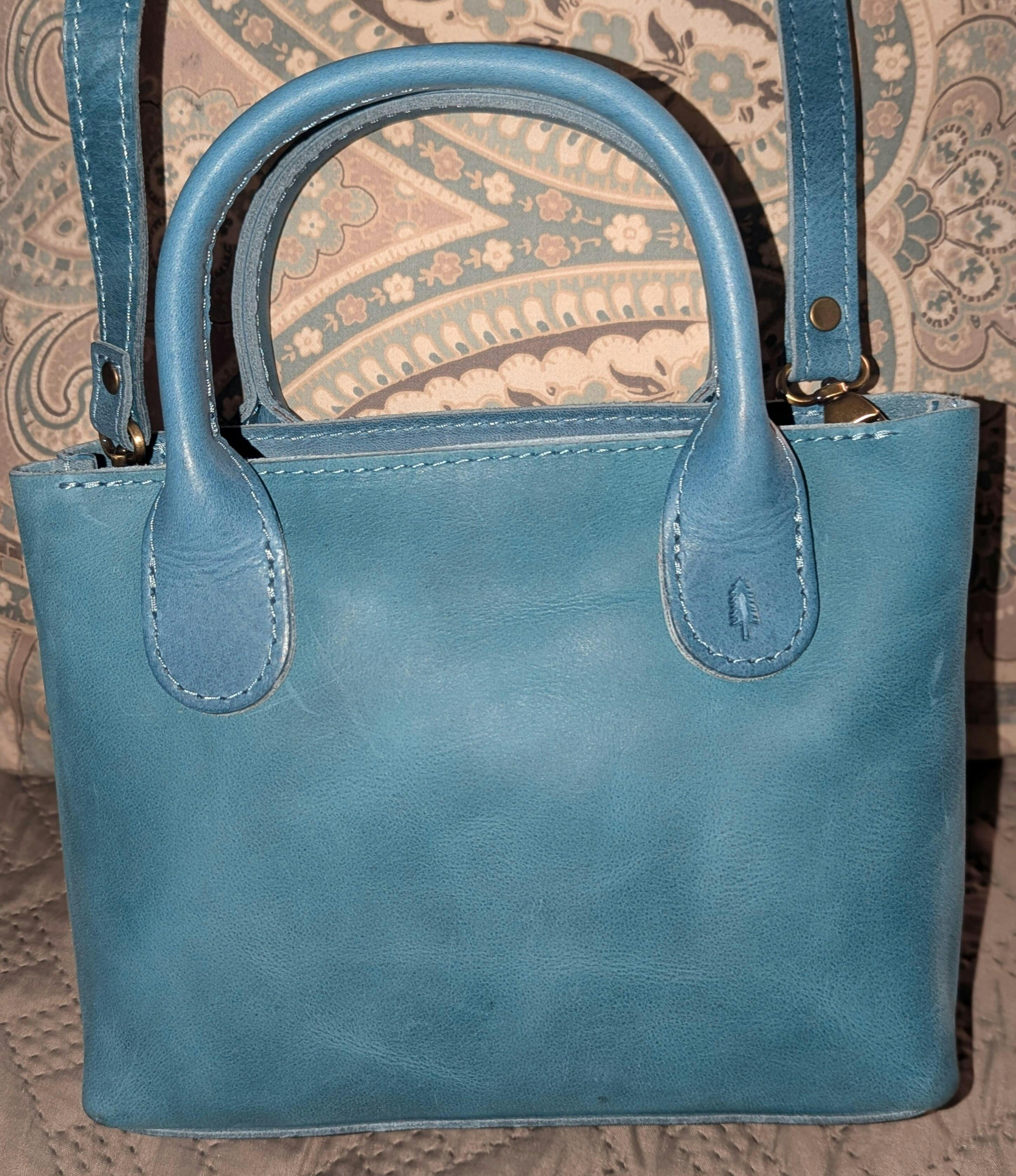 My new favorite is definitely this Cowboy Mint Raindrop. It’s the perfect small sized crossbody that holds all my daily essentials. The size is just right for my 5’2”, 110lb. petite frame. I highly recommend his bag!