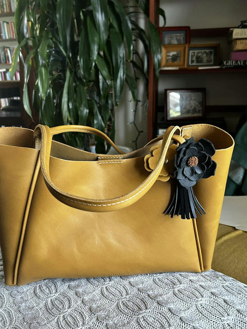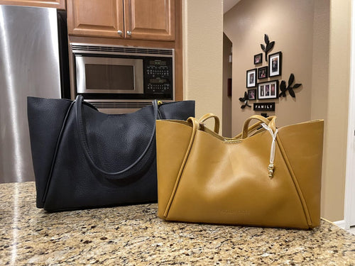 I love this tote! It is a beautiful color and it’s soft and smells amazing. I like the snap closure, and the interior pocket. I also love the size. I got the medium and it’s a great in-between size. I love that it’s not too deep. The color of mine is night owl. Sometimes it looks nearly black, and other times it looks dark navy. I love that it appears to change hues depending on the lighting.