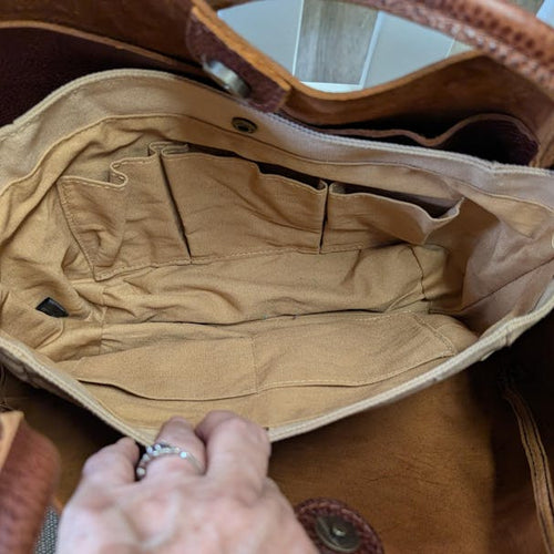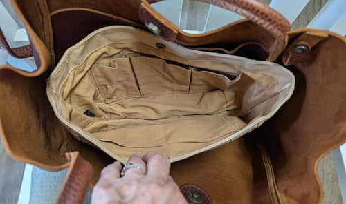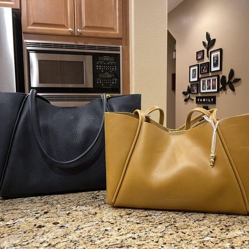 I love this design so much I purchased my second one. They are both deceivingly spacious. Never thought totes can look elegant until I got these. Eventually, I will pick up in another color. Portland Leather Goods offer great and beautiful products.
