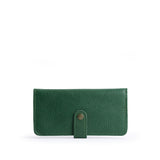 • Features a secure snap closure with 8 card slots and a zippered interior pocket