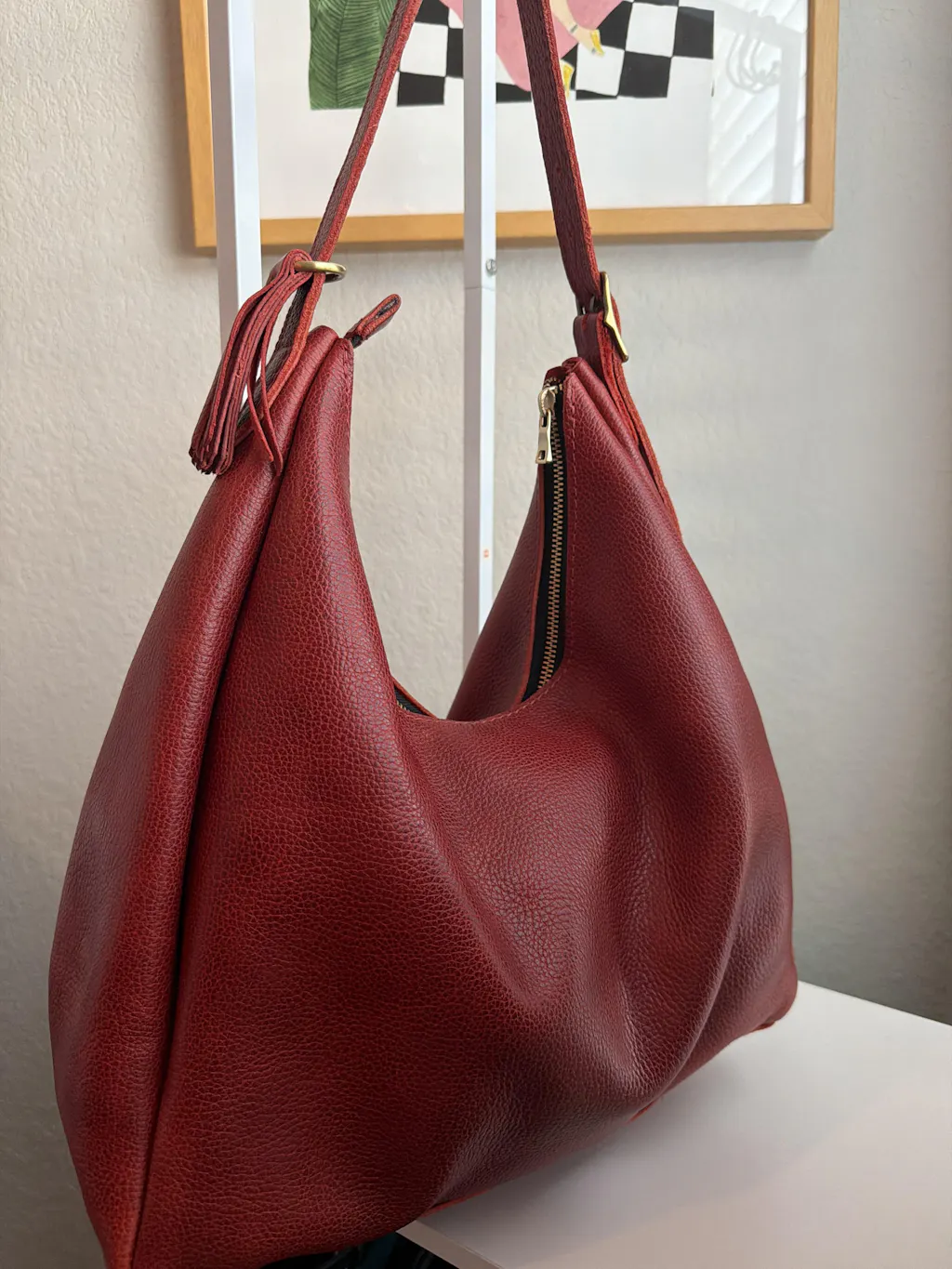 In love with this bag! Tried out a new color as well, and it’s the cutest thing. Love the slouch, the smell of the leather and everything. However, I recommend getting a purse organizer because the leather will dye the things you put inside. Other than that, no complaints! :)