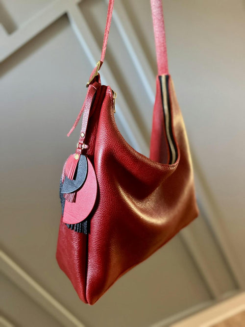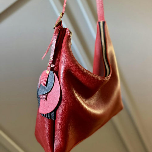 Chili Red*Large | U-shaped, flat-bottomed leather shoulder bag with adjustable strap