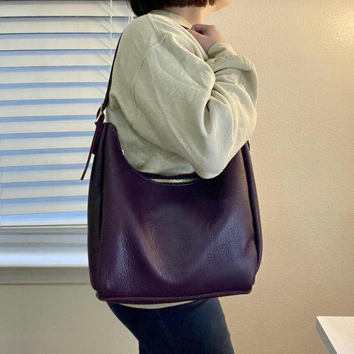 I did not expect to love this bag this much! This bag is made with high quality leather. The Plum color is absolutely gorgeous. I am 5’7 and have the larhe it is a perfect size and has plenty of space for my things. I am enjoying this as my winter bag which means I’ll have to get one for Spring, Summer and Fall, right? I would recommend this bag to my friends and family. 😊