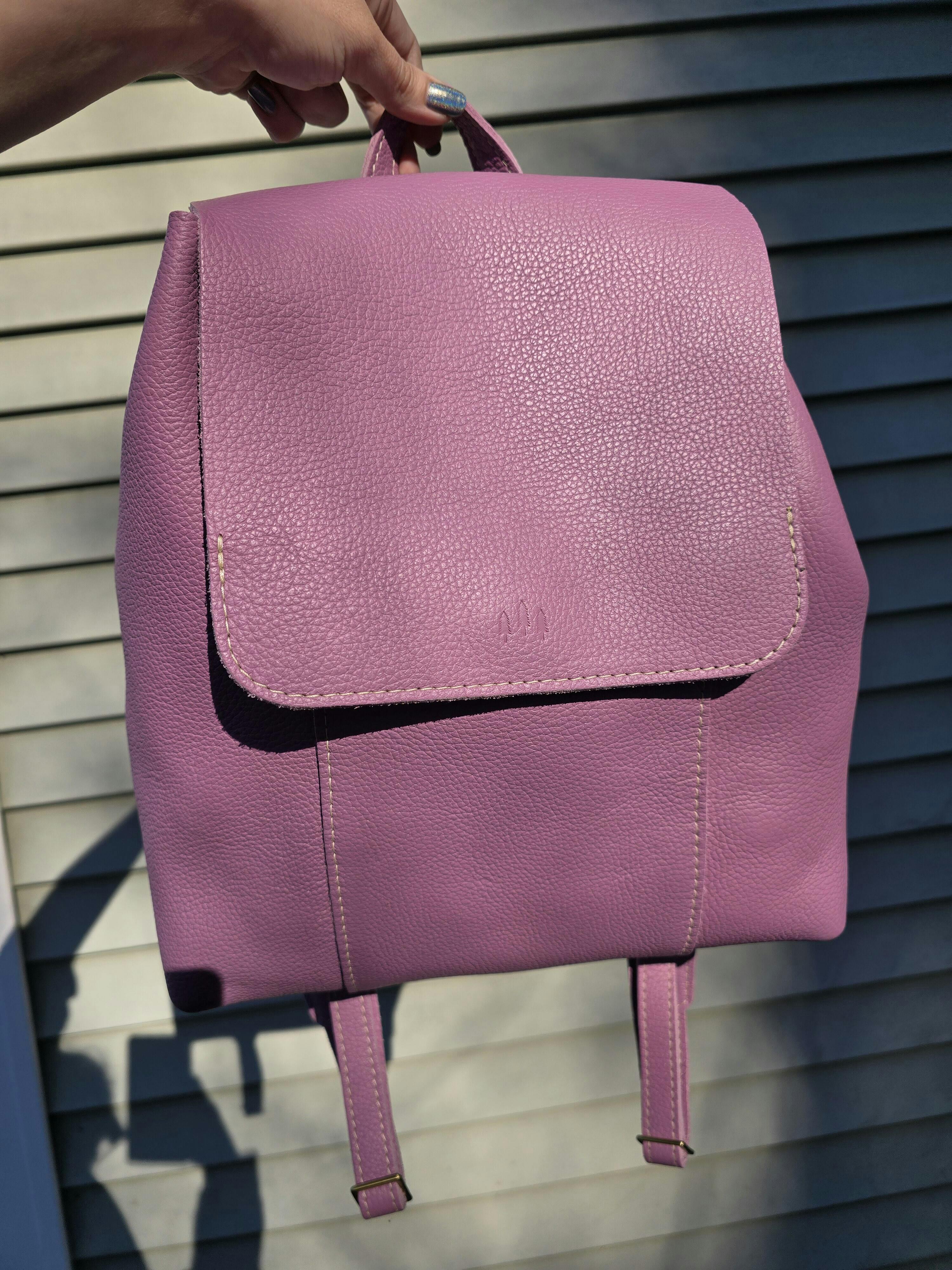 I had a PLG backpack tote and wanted something at least that big to hold all my purse items. The Boston delivers!! I can actually carry more since the top is wider. I move my canvas organizer from one to the other with ease and perfect fit. The backpack zipper is good size for my keys and daisy wallet, but phone is a bit too bulky and you can feel it on your back. Rhubarb is nice feel, "soft" pebble look, medium firmness to hold shape. First suggestion for future - outer loops or snaps to attach flair (tassel, pouches). I used inner strap band and looped dragonfly to it to hang out the top side (see pic). Second suggestion - put back zipper on the opposite side. If you are right handed like me, you sling backpack to the left shoulder to fish out things from purse in checkout line. With back zipper on the left side, it's hard to get into it for my wallet or keys.