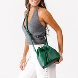 I love my bucket bag. I needed something slightly bigger to fit my wallet and glasses case but not bulky. It ended up being the perfect size. And the green color is beautiful for the summer and easy to transition to fall!