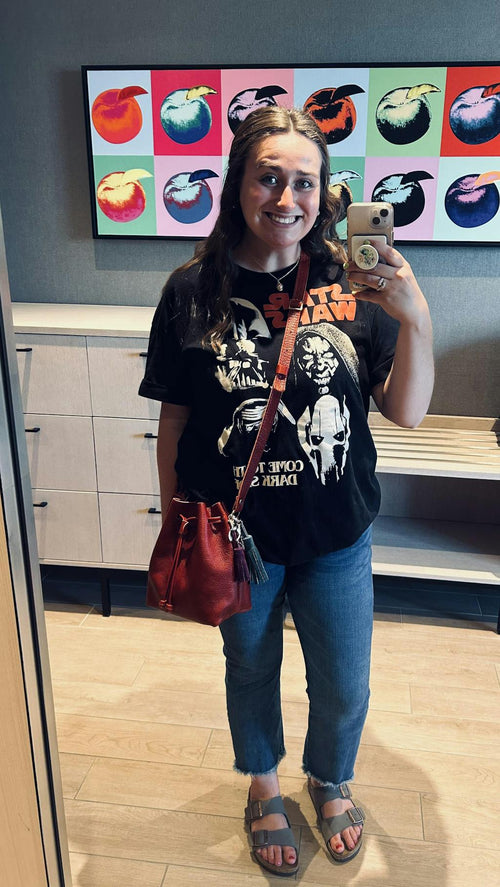 You guys. This bag is EVERYTHING. I was intimidated at first about the small size, but it holds so much! Inside I can fit my small Bozeman wallet, taco tassel pouch, Lovebug plus, small Luna pouch, mini daisy, and my phone and keys! I absolutely love how easy the bucket bag is to use! You can wear it crossbody or on your shoulder, it’s easy to reach right into for your phone or wallet, and it’s simply adorable. The leather smells lovely and the Coldbrew color is rich, soft, and pebbly. I am very seriously considering getting a large bucket, honestly the best purse!