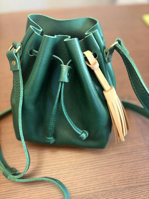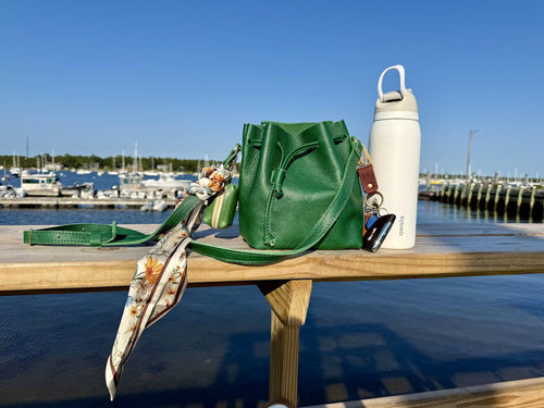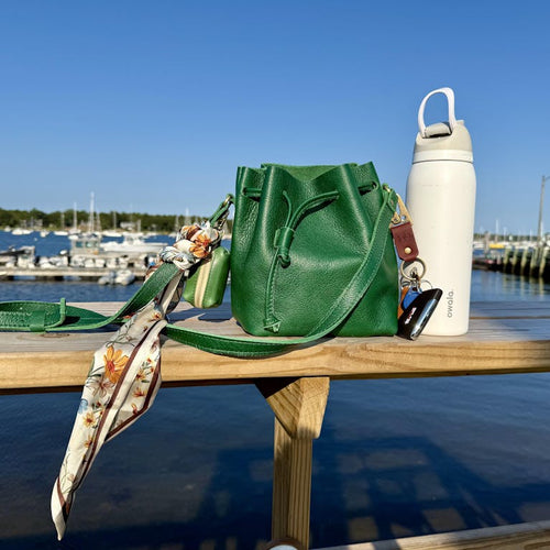 I love my bucket bag. I needed something slightly bigger to fit my wallet and glasses case but not bulky. It ended up being the perfect size. And the green color is beautiful for the summer and easy to transition to fall!