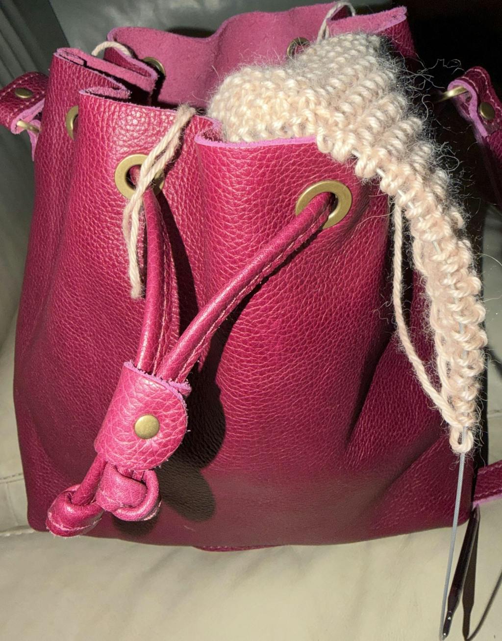 I purchased this beautiful bag to serve two purposes - a bag and a project bag to hold my knitting. It’s perfect for both! The leather is just lovely, the color (orchid) is perfect and the size is great! Highly recommend!