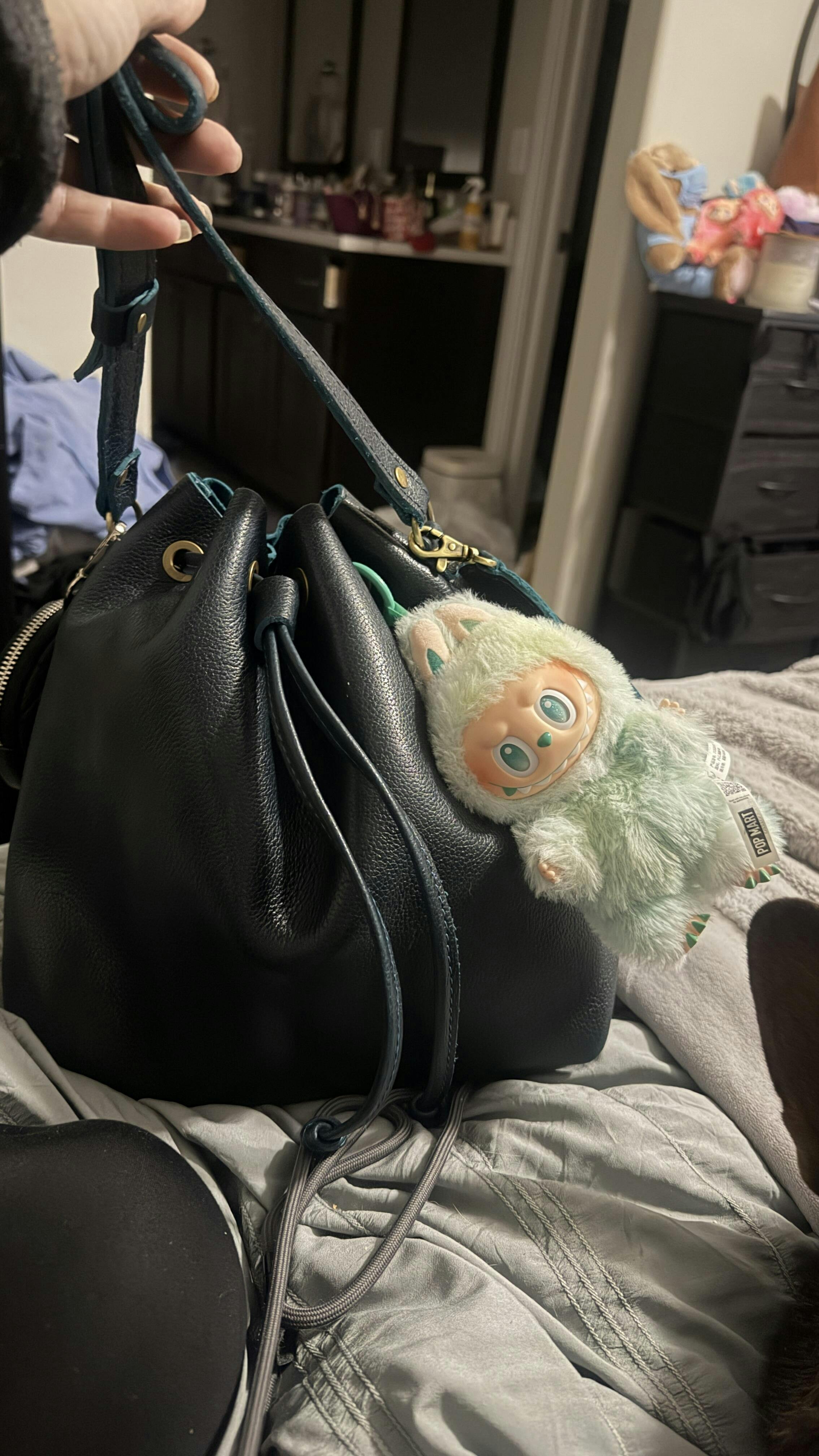 I love my bucket bag. I needed something slightly bigger to fit my wallet and glasses case but not bulky. It ended up being the perfect size. And the green color is beautiful for the summer and easy to transition to fall!