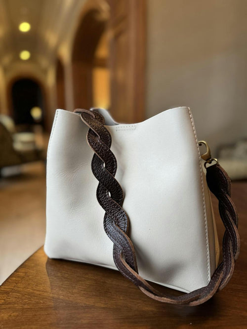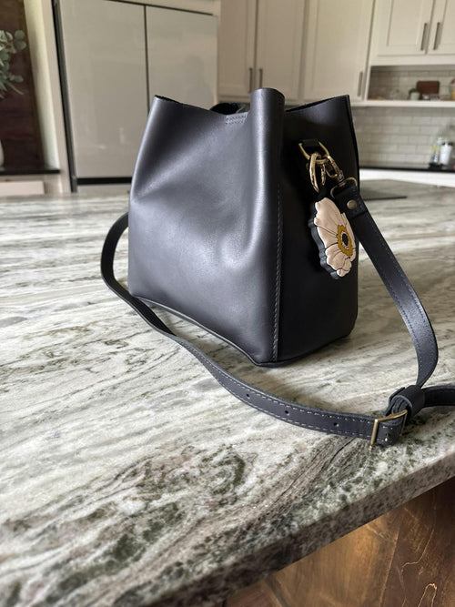 Meadow | symmetrical bucket bag with latch closure and removable crossbody strap