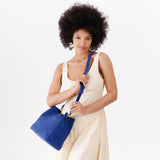 Joni Blue | symmetrical bucket bag with latch closure and removable crossbody strap