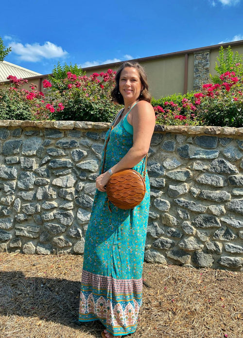 Cognac*Small | Circle shaped crossbody bag with top zipper