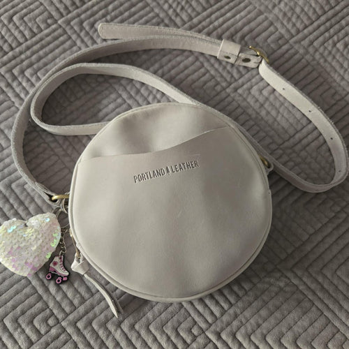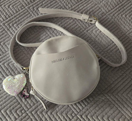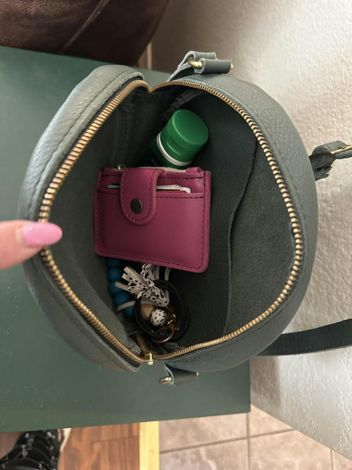 I love the large circle crossbody. It fits nicely around my neck. It is convenient to access and holds my 7” wallet, glasses, and makeup case on the inside and my iPhone fits perfectly on the outside. The leather is soft. This is my new favorite purse!