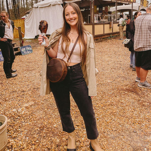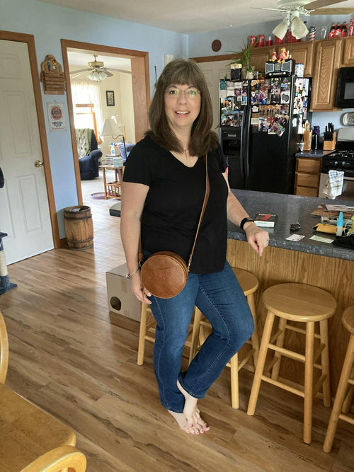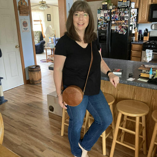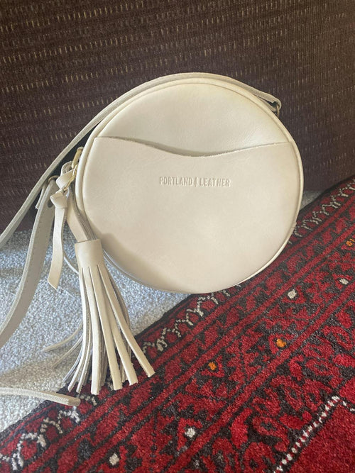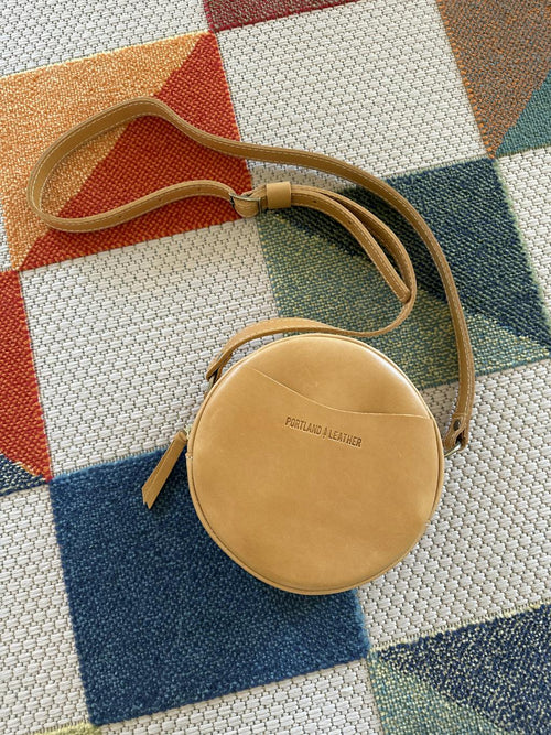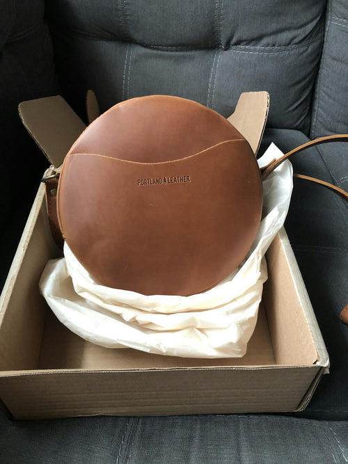 This is my second time buying a bag from Portland leather. The bags are such great quality and I love the circle design of this bag! Even my iPhone 13 can fit in the pocket. I also love the free 3 compartment wallet I got with it. This will definitely will be my overall go to bag.