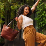 UNLINED AND OPEN INTERIOR: Our Tote Bags are unlined, featuring the natural suede underside of the leather on the inside. We use full-grain, oil-tanned leather that is incredibly durable and water tight – it's the same quality of leather that is used in making boots, saddles, and all manner of made-to-last, all-weather leather goods!