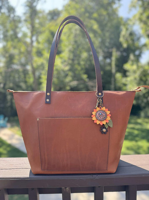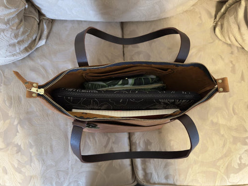 Nutmeg*Zipper | Large zipper leather tote bag with sturdy bridle handles and front pocket