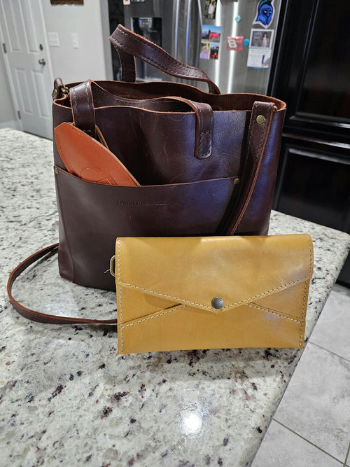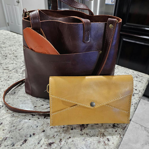 Got a sunflower convertible envelope to use as a wallet inside my cognac medium cb! I am so happy!!! It works wonderfully, and now I am not feeling too crowded! Since my husband had a stroke I carry his wallet and phone in my bag, also , so I was feeling very messy and disorganized. Now everything has it's own place and it is very easy to find! Might have to get some other colors soon, but sunflower is beautiful!!!