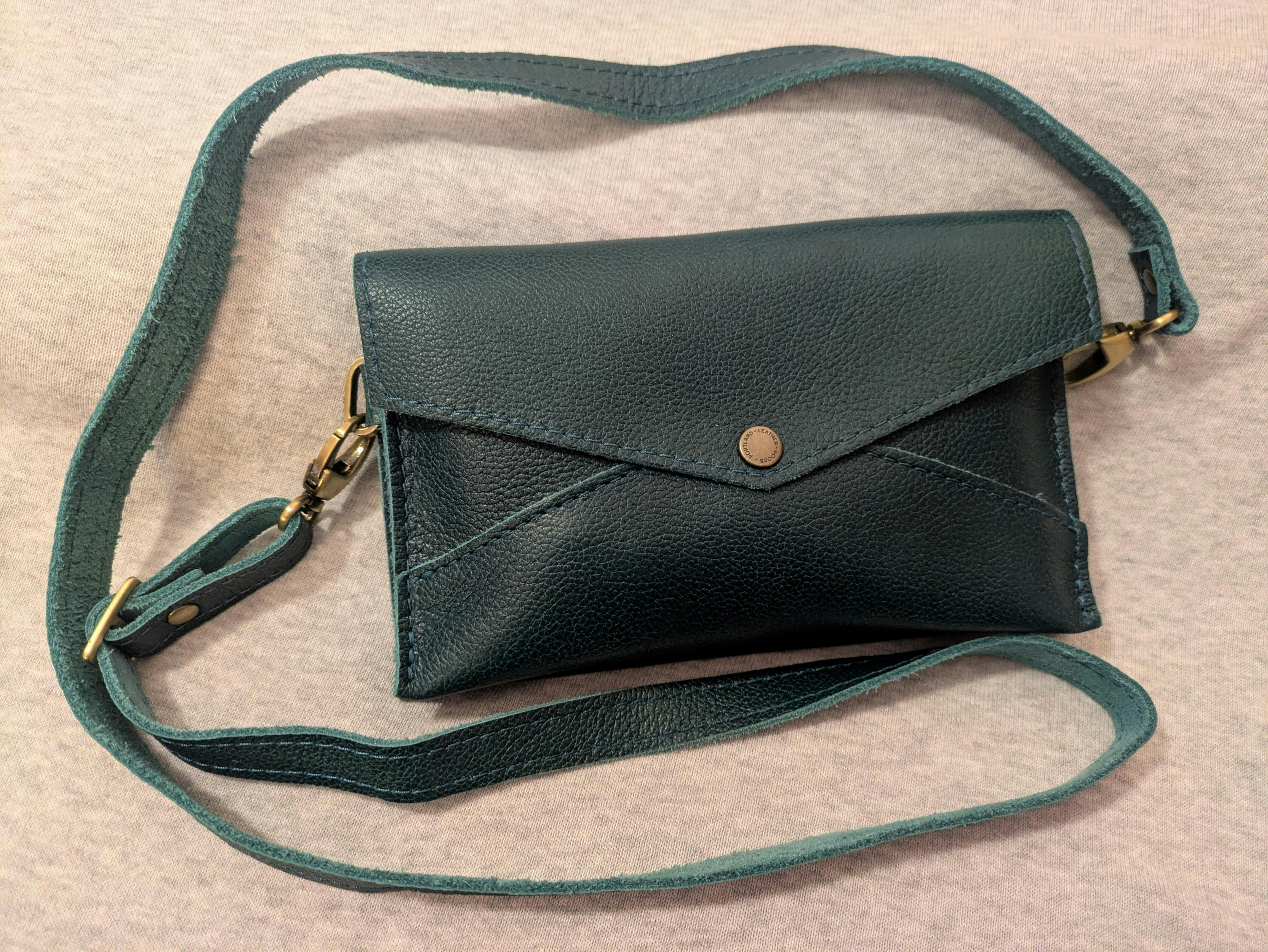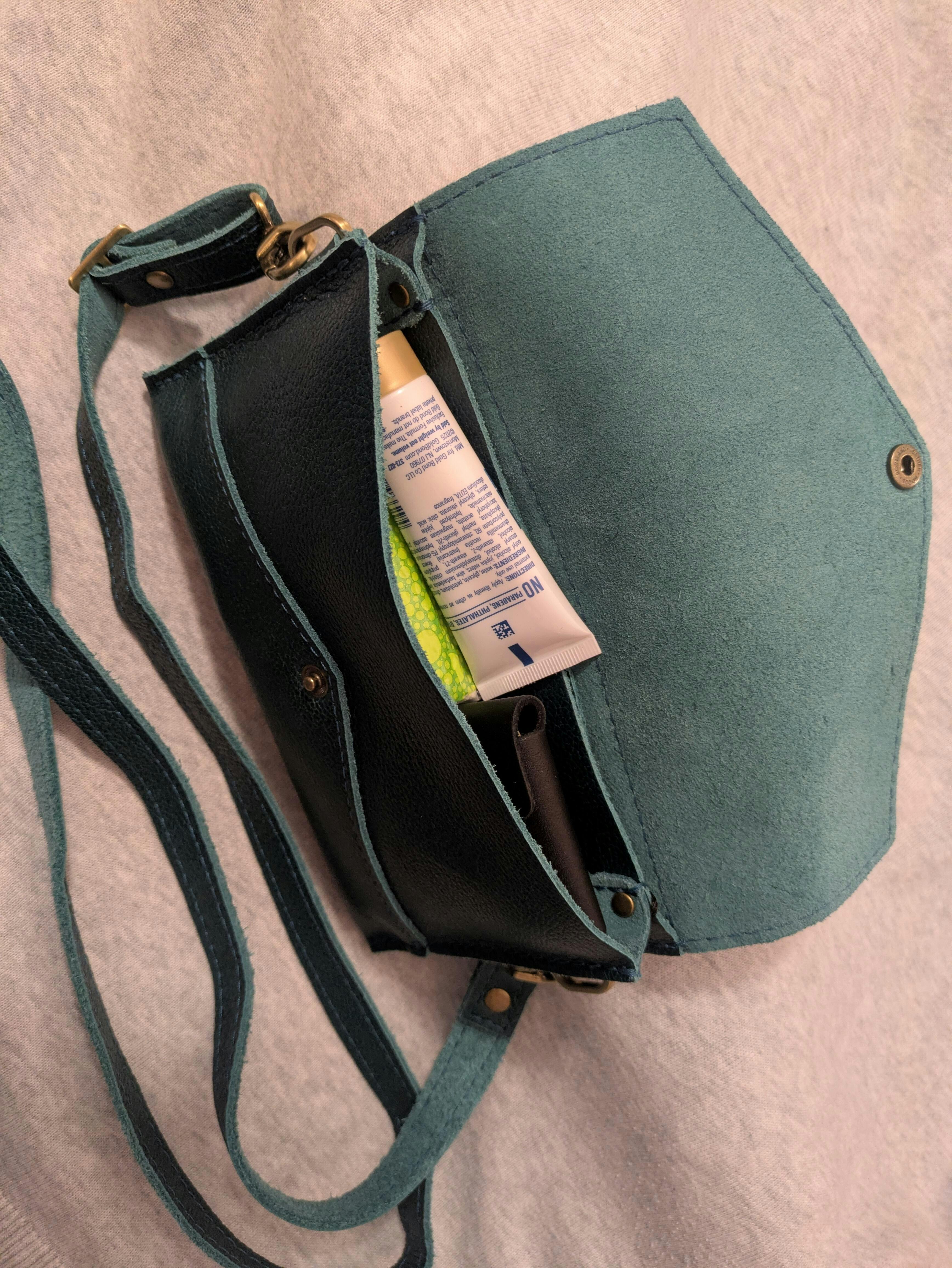 I really like my new, pretty & soft Seaglass Envelope Crossbody. It holds my new black Daisy plus, keys/fob, tissue packet, 1 oz lotion & lip balm with my phone in the inside or outside pocket. It's perfect to grab & run and not be weighed down by a larger bag (when you don't need many supplies.)