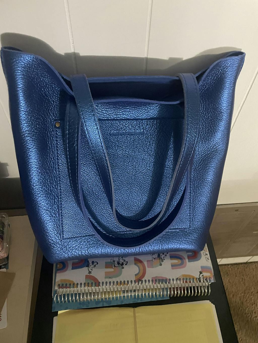 This bag is everything you wish for in a bag! It is larger than I expected without being overbearing. I love my large tote and was not expecting this to hold almost as much. I can throw my laptop in it, my water bottle and my other little’s bag and go. It has a Crossbody strap which I love, but the best feature is that the handles are long enough that it is comfortable to carry on my shoulder (which is my preferred way). And I got mine in the Comet blue which is stunning-people literally stop me on the street and ask about it.