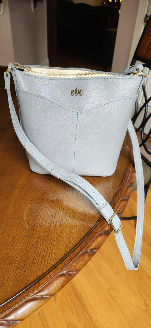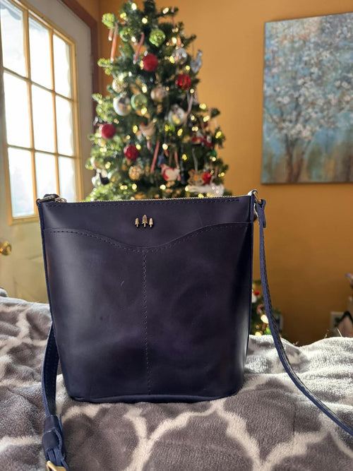 This is an amazing small crossbody purse. I ordered in cowboy blue. The color is rich and vibrant. The small tree logo looks amazing and isn’t in your face. This bag was perfect for a girls night dinner. Such a fun bag!