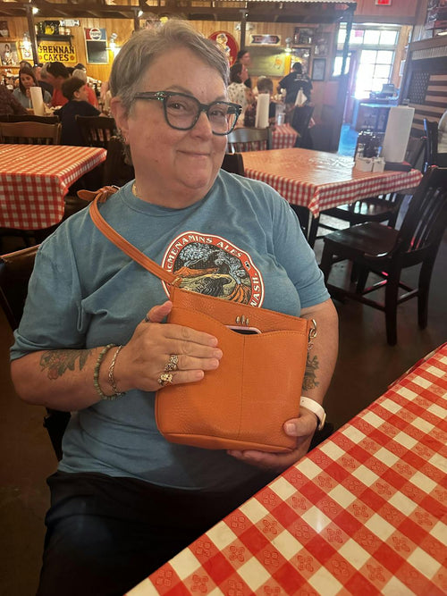 This is an amazing small crossbody purse. I ordered in cowboy blue. The color is rich and vibrant. The small tree logo looks amazing and isn’t in your face. This bag was perfect for a girls night dinner. Such a fun bag!