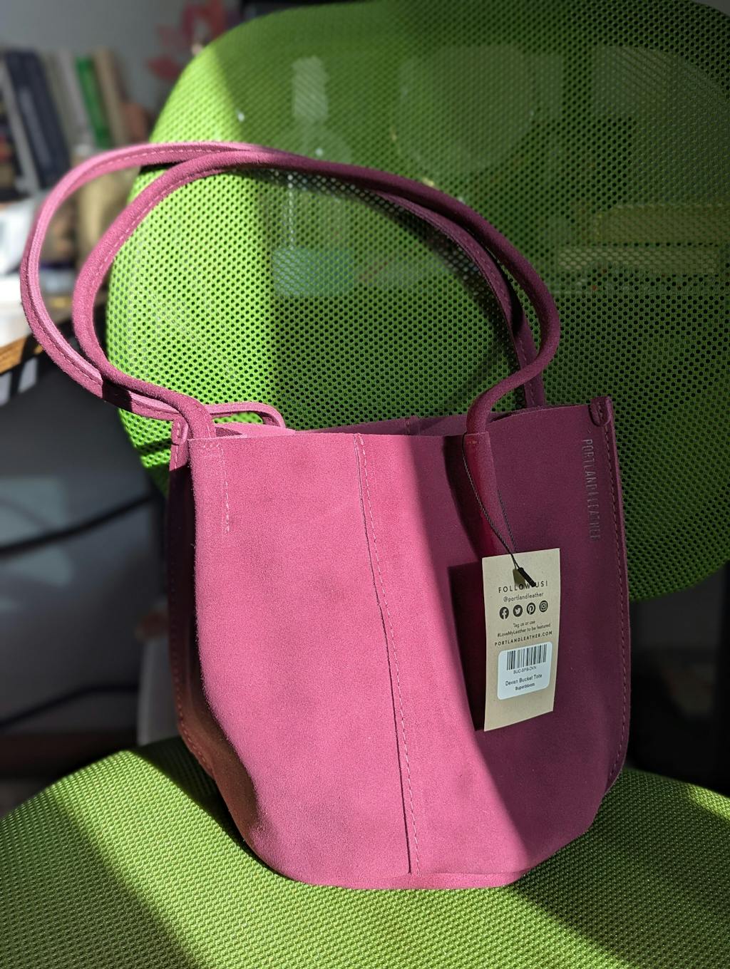 My oversized Devan bucket tote in Pink Suede is absolutely fantastic! It fits SO MUCH and I love how slouchy it is.
